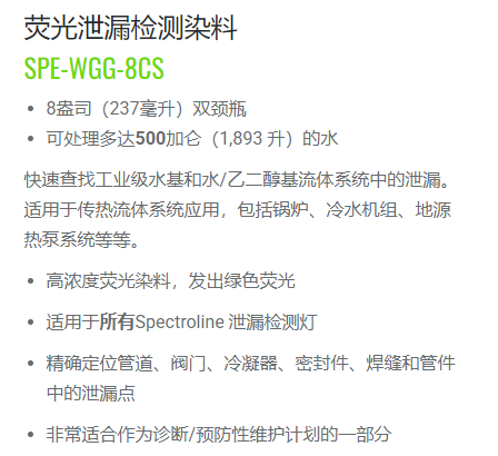 SPECTROLINE 泄漏检测染料SPE-WGG-8CS