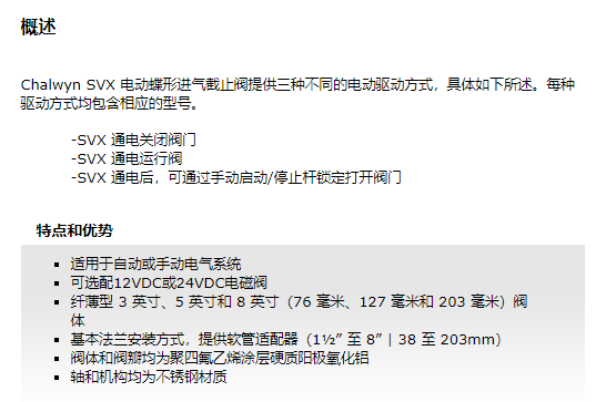 CHALWYN 电动蝶形进气截止阀CE240系列