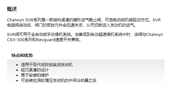 CHALWYN 蝶形进气截止阀SVR-3XX系列