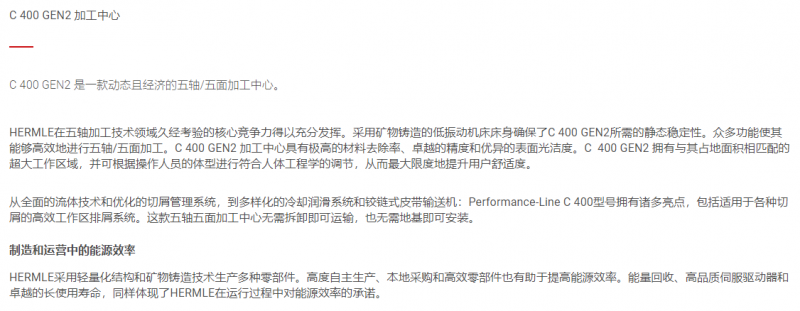 HERMLE 加工中心C 400 GEN2系列