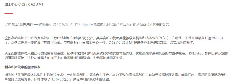 HERMLE 加工中心C 62 / C 62 U MT系列