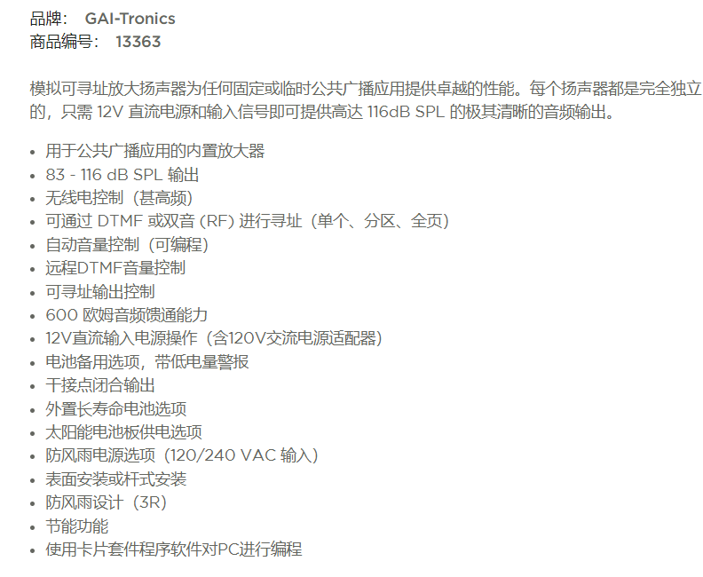 GAI-TRONICS 可寻址放大扬声器13363系列