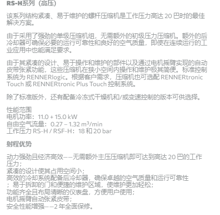 RENNER 高压螺杆压缩机RSKF-H 11.0系列