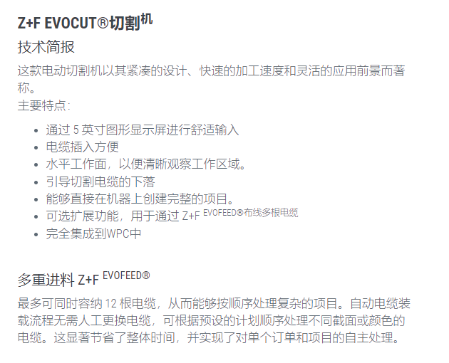 Z+F 电动切割机EVOCUT系列