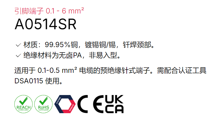 ELPRESS 引脚端子A0514SR系列
