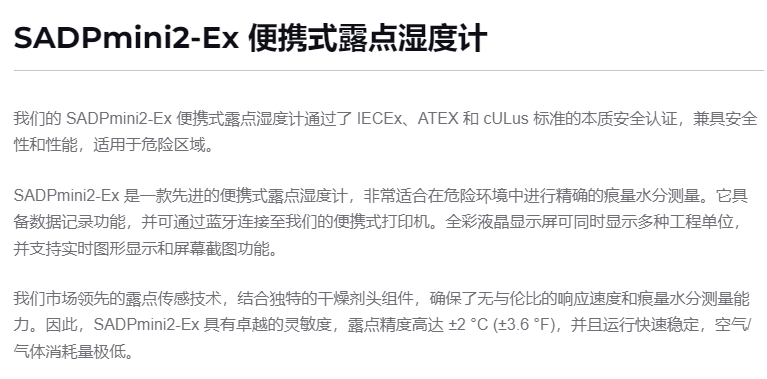 alpha 便携式露点湿度计SADPmini2-Ex系列