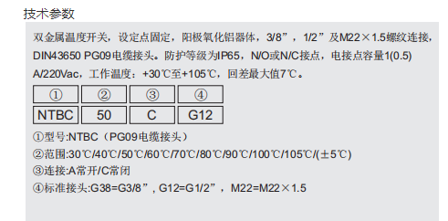 JUNWELL 双金属温度开关NTBC系列