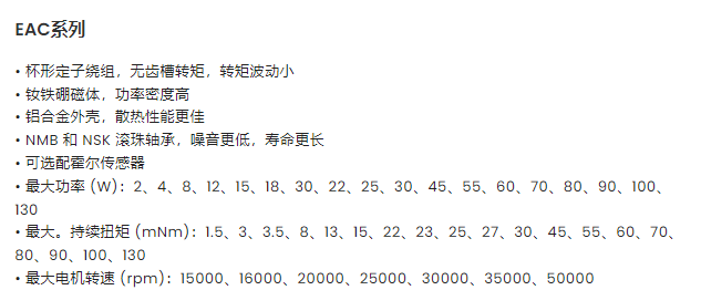 ALTEK Motion 无槽直流无刷电机EAC系列
