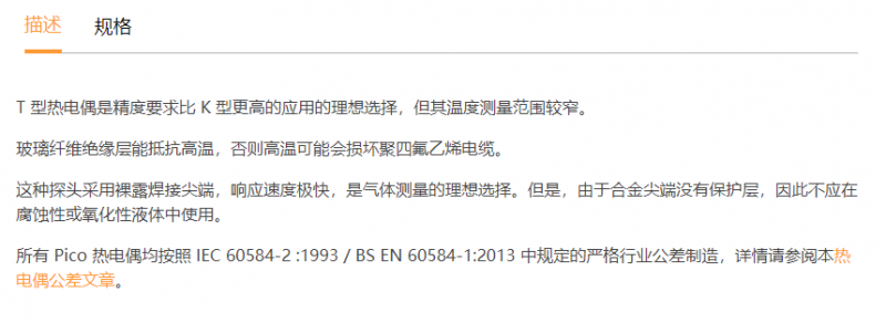 PICO 高温型K型热电偶