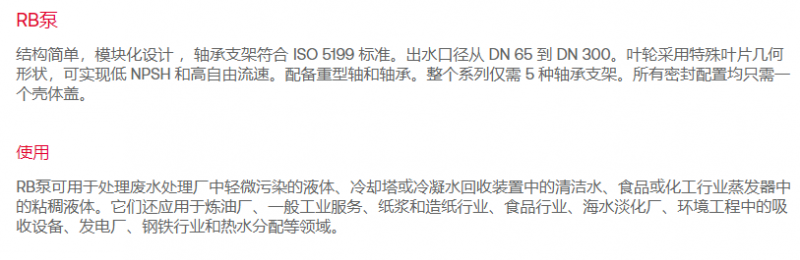 SR PUMPS 叶轮离心泵04- RB系列