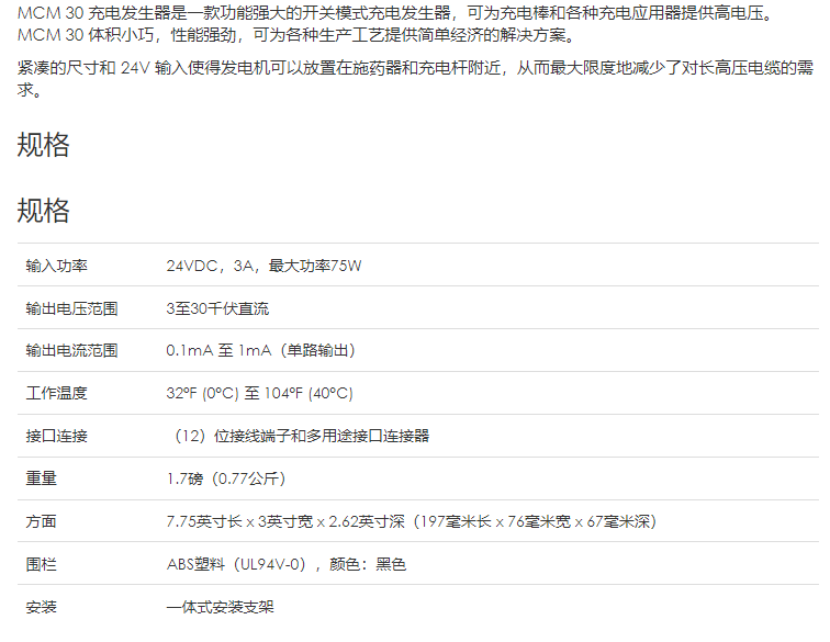 ION 充电发电机MCM 30系列