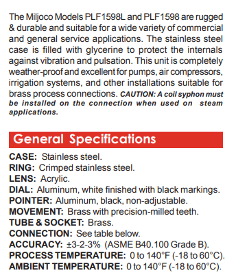 MILJOCO 压力表PLF1598系列