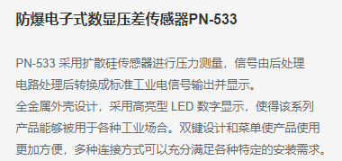 PAKU 防爆电子式数显压差传感器PN-533系列