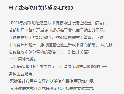 PAKU 电子式液位开关传感器-LF600系列