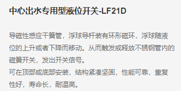 PAKU 中心出水专用型液位开关-LF21D系列