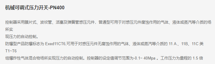 PAKU 机械可调式压力开关-PN400系列