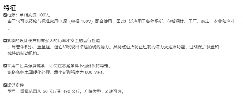 ELEPHANT 钩式电动链式起重机αSW型系列