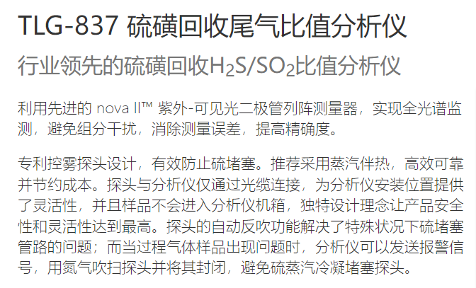 AAPLIED 硫磺回收尾气比值分析仪TLG-837系列