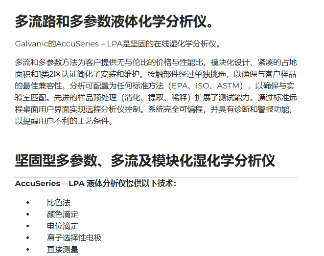 GALVANIC 多流路和多参数液体化学分析仪系列