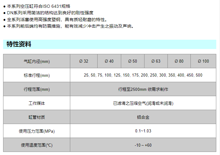UNIMEC 无拉杆式铝合金气缸DNB系列