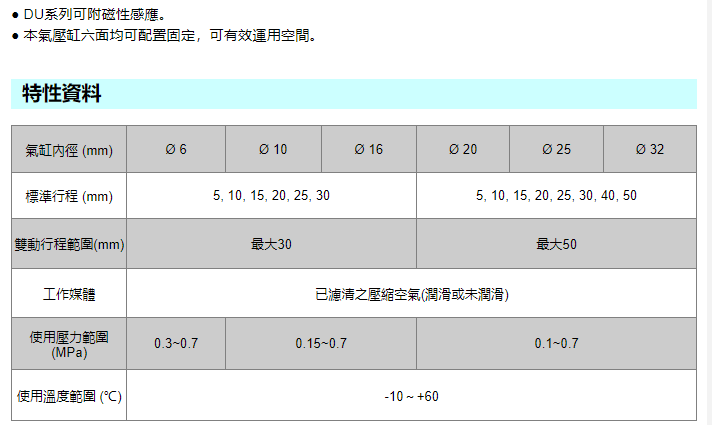 UNIMEC 多位置固定型铝合金气缸DUQ系列