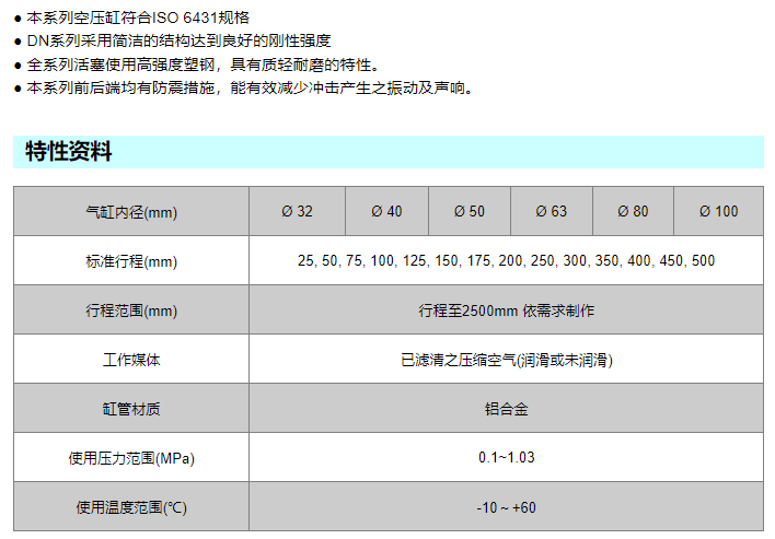 UNIMEC 无拉杆式铝合金气缸DNN系列