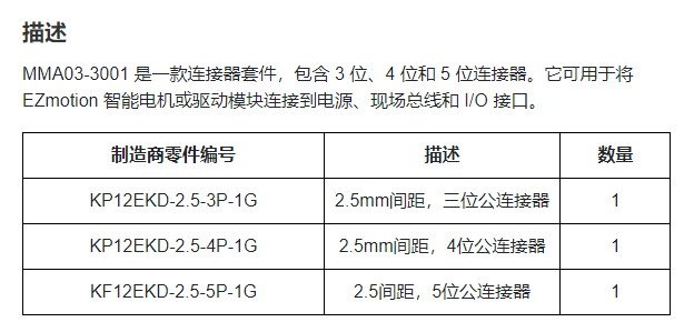 EZmotion 连接器套件MMA03-3001系列