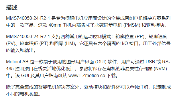 EZmotion *体式伺服电机MMS740050-24系列