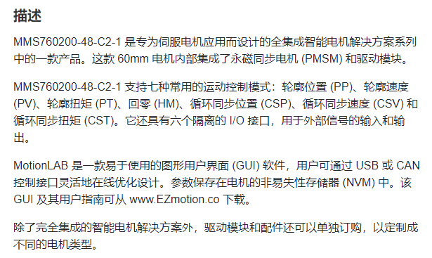 EZmotion *体式伺服电机MMS760200系列