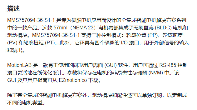 EZmotion *体式伺服电机MMS757094系列