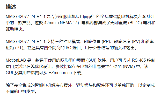 EZmotion *体式伺服电机MMS742077系列
