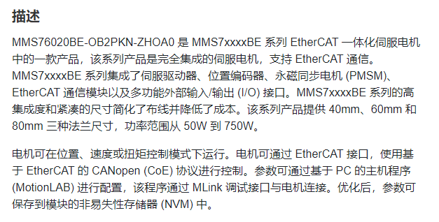 EZmotion *体式伺服电机MMS76020BE系列