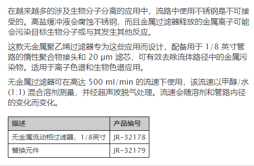 VICI 无金属生物相容性流动相过滤器系列