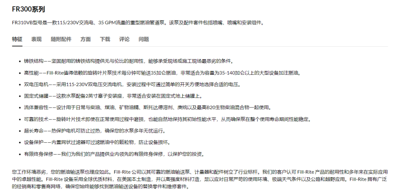 FILL-RITE 燃油管道泵带喷嘴FR310VB系列