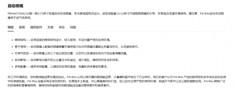 FILL-RITE 自动柴油喷嘴FRNA075DAU10系列