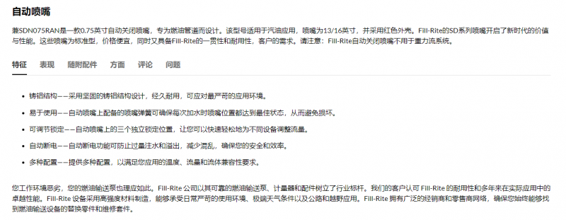 FILL-RITE 自动汽油喷嘴SDN075RAN系