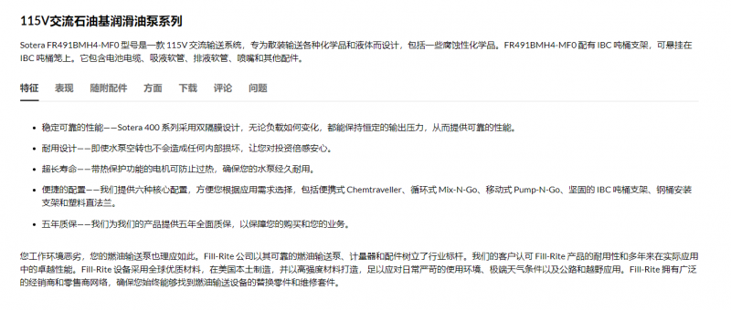 SOTERA 115V交流输油泵FR491BMH4-MF0