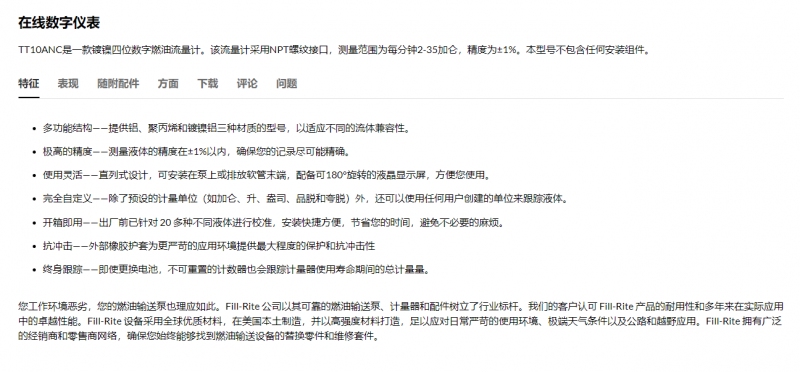 SOTERA 四位数字燃油管道流量计TT10ANC系列