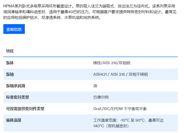 Pentax 卧式多*泵HPMA系列