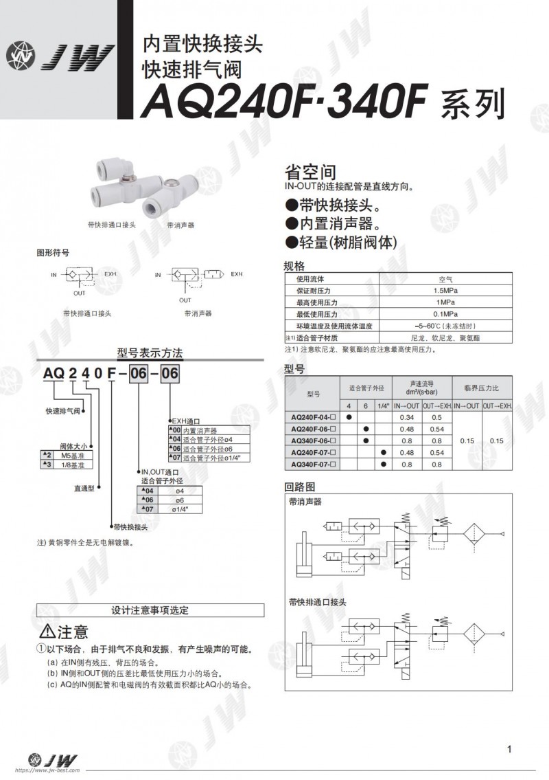 JW JINGWEN 带接头快速排气阀AQ系列