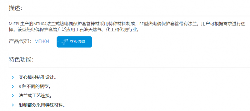MIEPL 螺纹热电偶套管MTH04系列