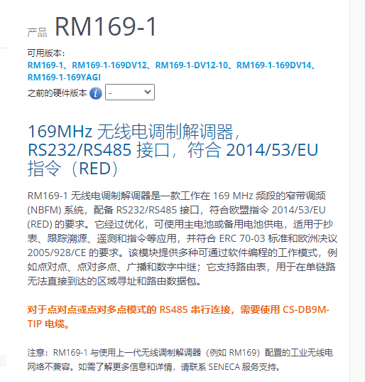 SENECA 无线电调制解调器RM169-1系列