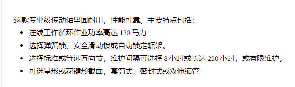 Weasler 专业传动轴系列