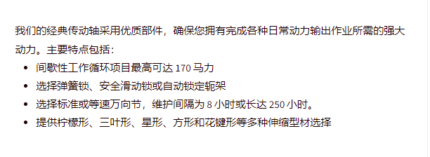 Weasler 经典型传动轴系列
