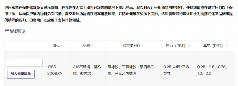 GITS 2 英寸低矮型压力/真空泄压阀1655系列
