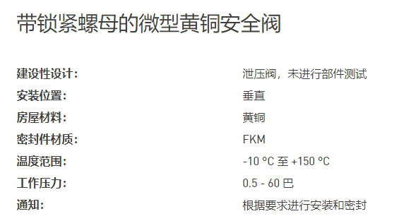 MADER 带锁紧螺母的微型黄铜安全阀系列