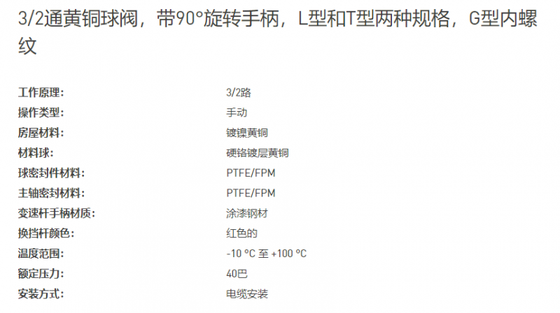 MADER 3/2通黄铜球阀,带90°旋转手柄系列