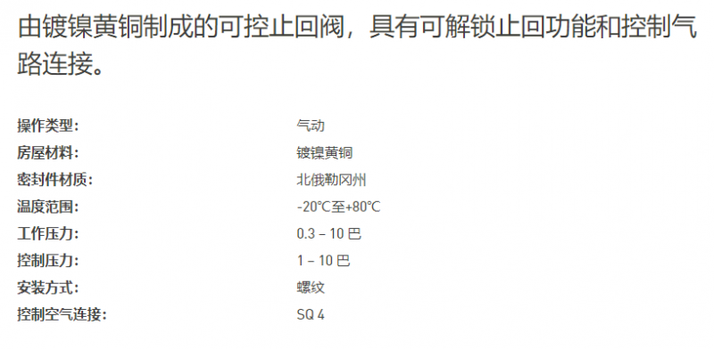 MADER 由镀镍黄铜制成的可控止回阀系列