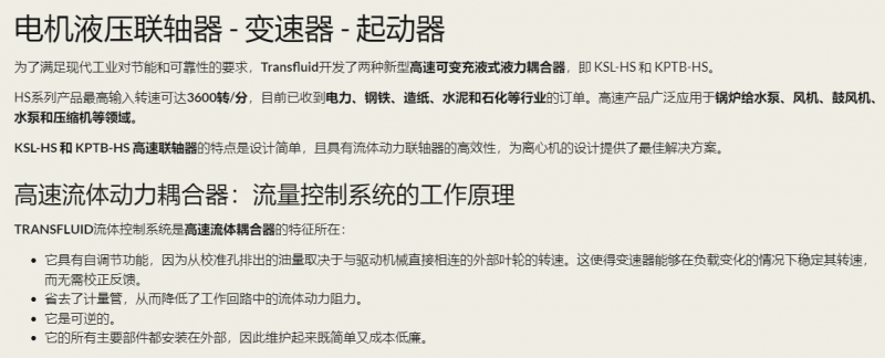 TRANSFLUID 可变填充流体动力耦合器HS系列